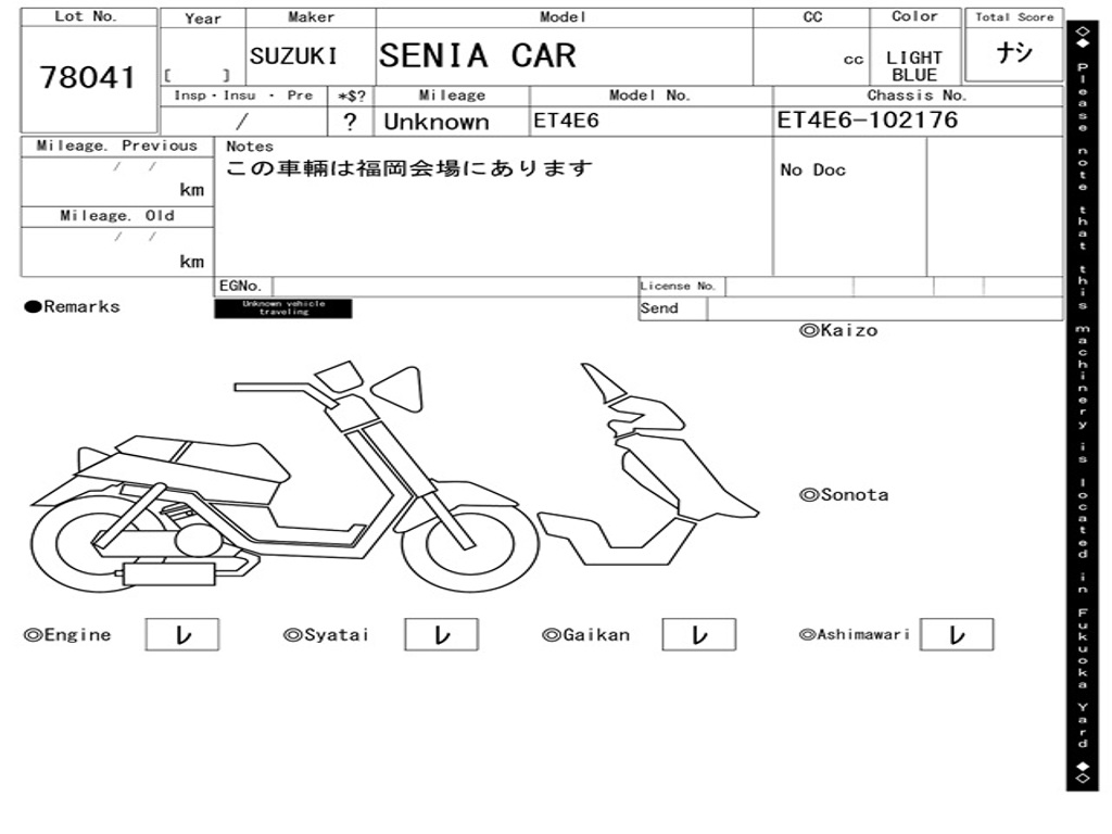 | Номер рамы / VIN | ET4E6-102176 |