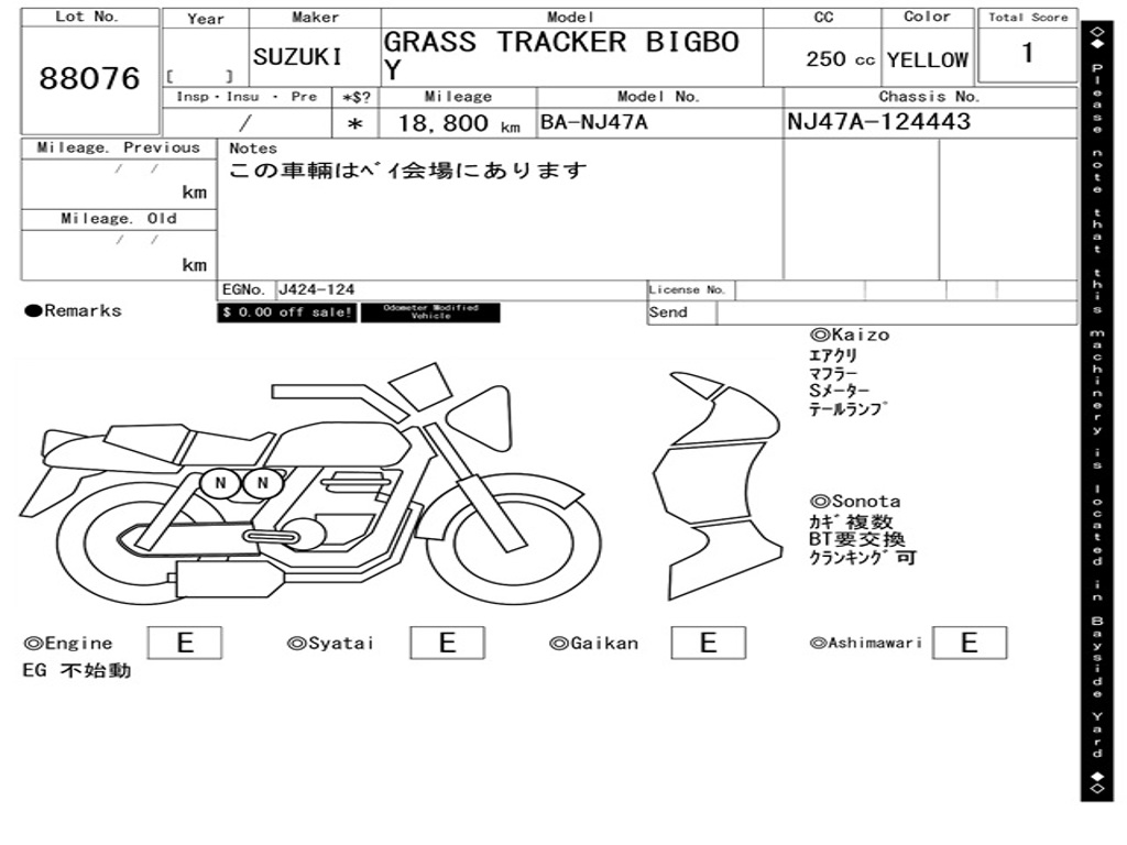 | Номер рамы / VIN | NJ47A-124443 |