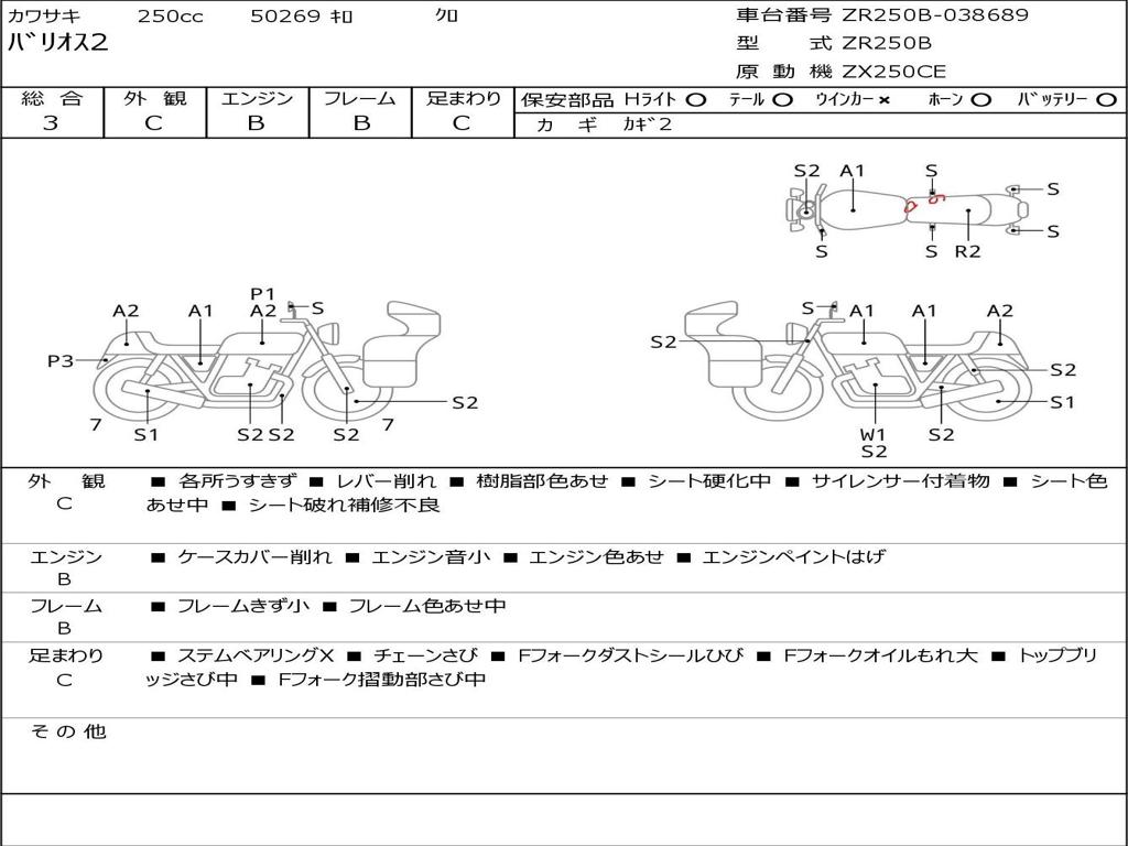 | Номер рамы / VIN | ZR250B-038689 |