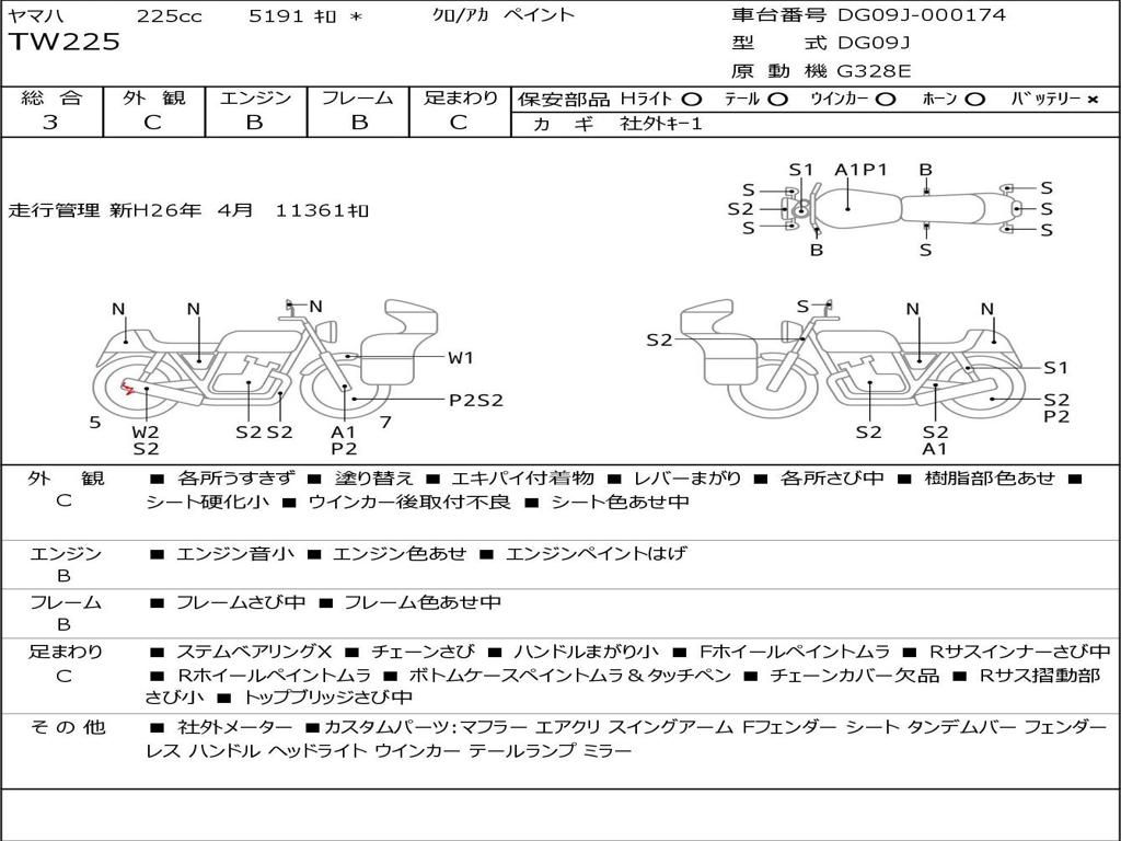 | Номер рамы / VIN | DG09J-000174 |