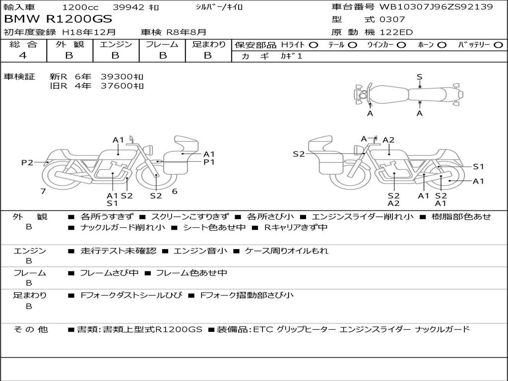 | Номер рамы / VIN | WB10307J96ZS92139 |