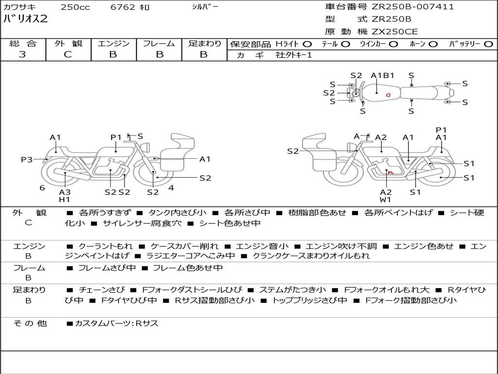 | Номер рамы / VIN | ZR250B-007411 |