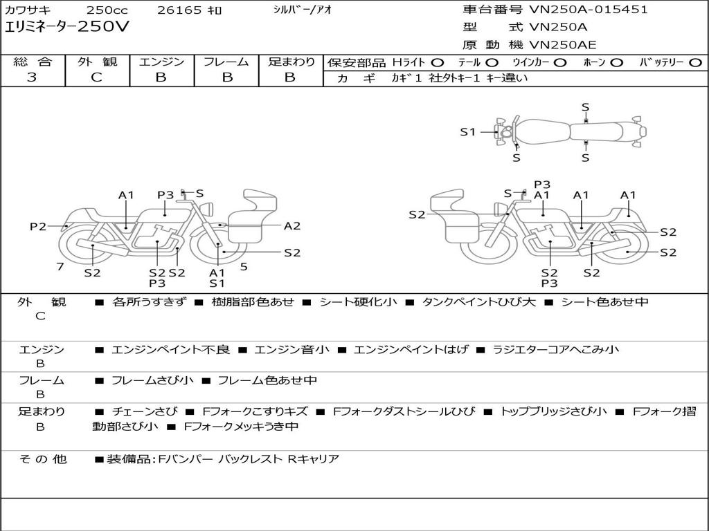 | Номер рамы / VIN | VN250A-015451 |