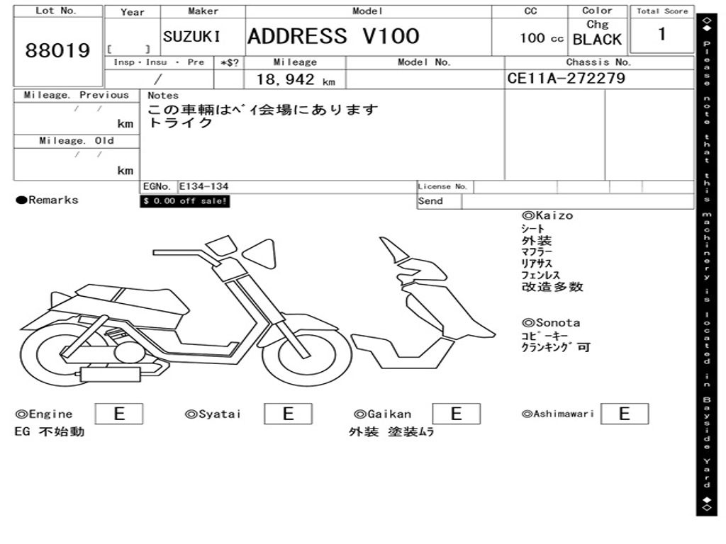 | Номер рамы / VIN | CE11A-272279 |