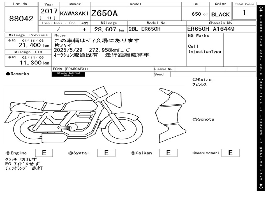 | Номер рамы / VIN | ER650H-A16449 |