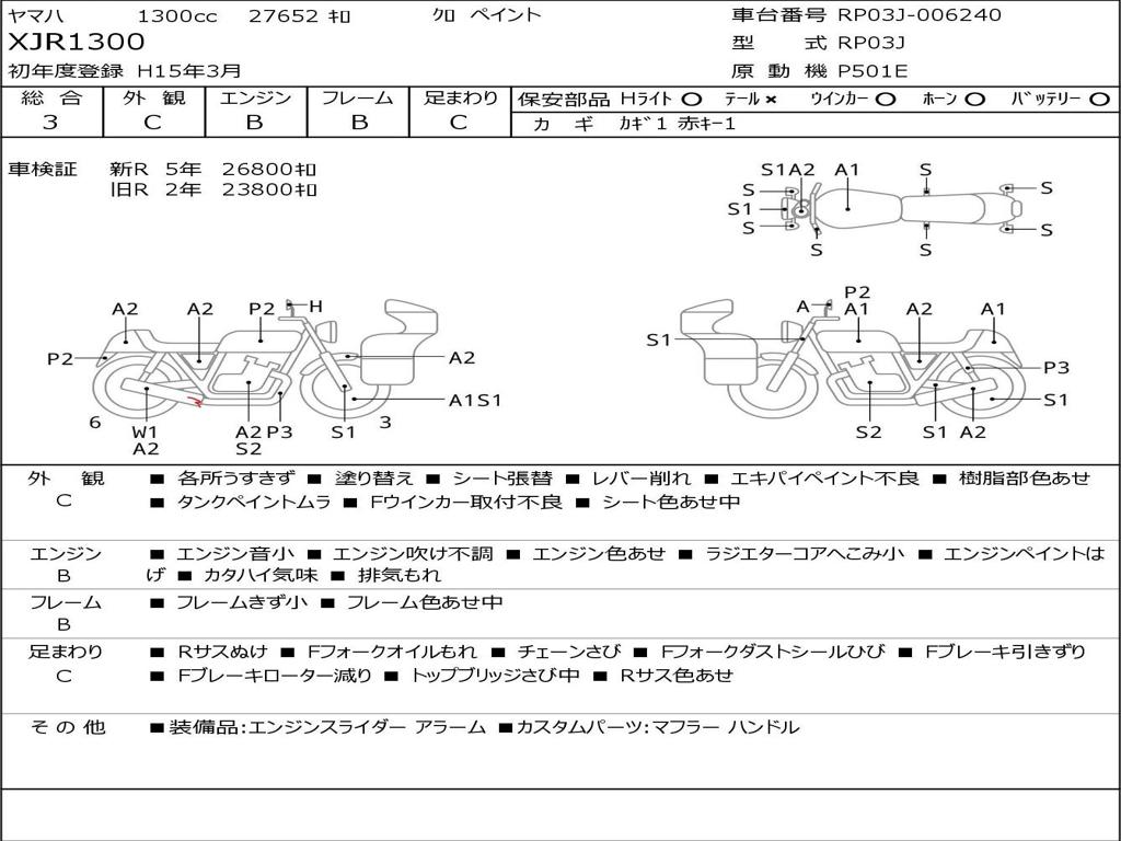 | Номер рамы / VIN | RP03J-006240 |