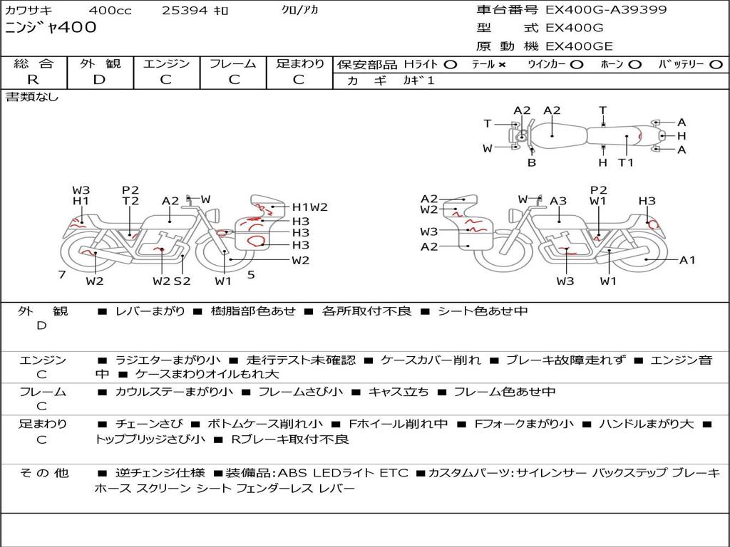 | Номер рамы / VIN | EX400G-A39399 |