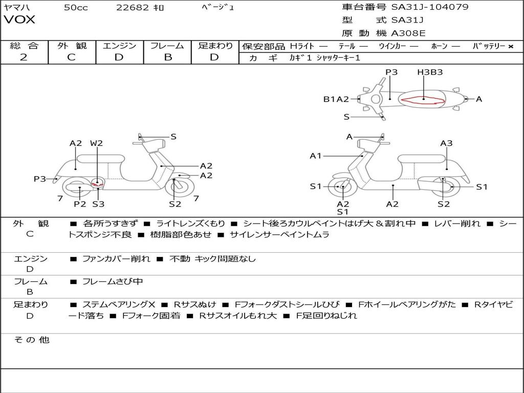 | Номер рамы / VIN | SA31J-104079 |