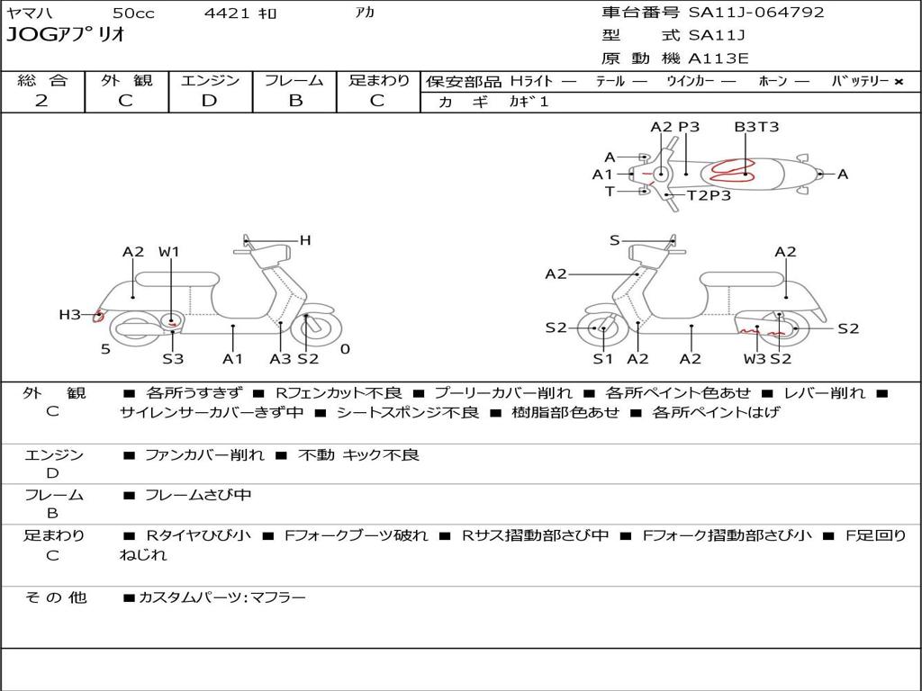| Номер рамы / VIN | SA11J-064792 |