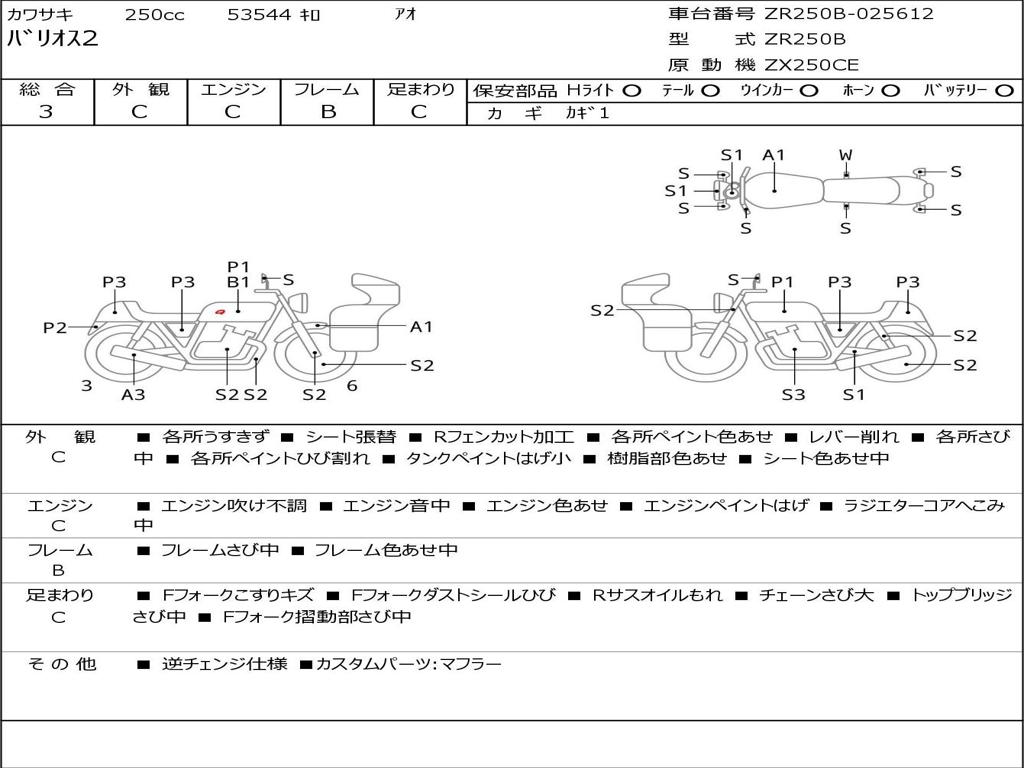 | Номер рамы / VIN | ZR250B-025612 |