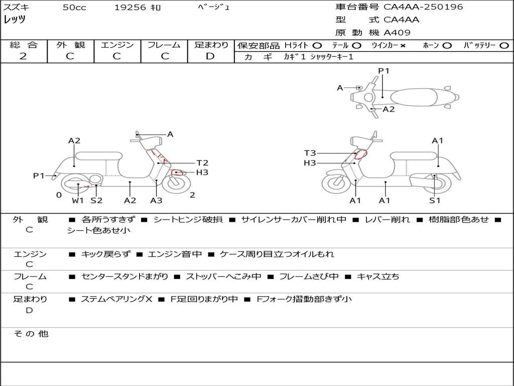 | Номер рамы / VIN | CA4AA-250196 |