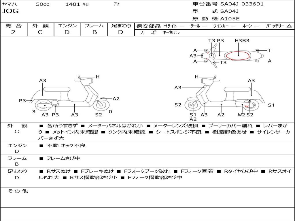| Номер рамы / VIN | SA04J-033691 |