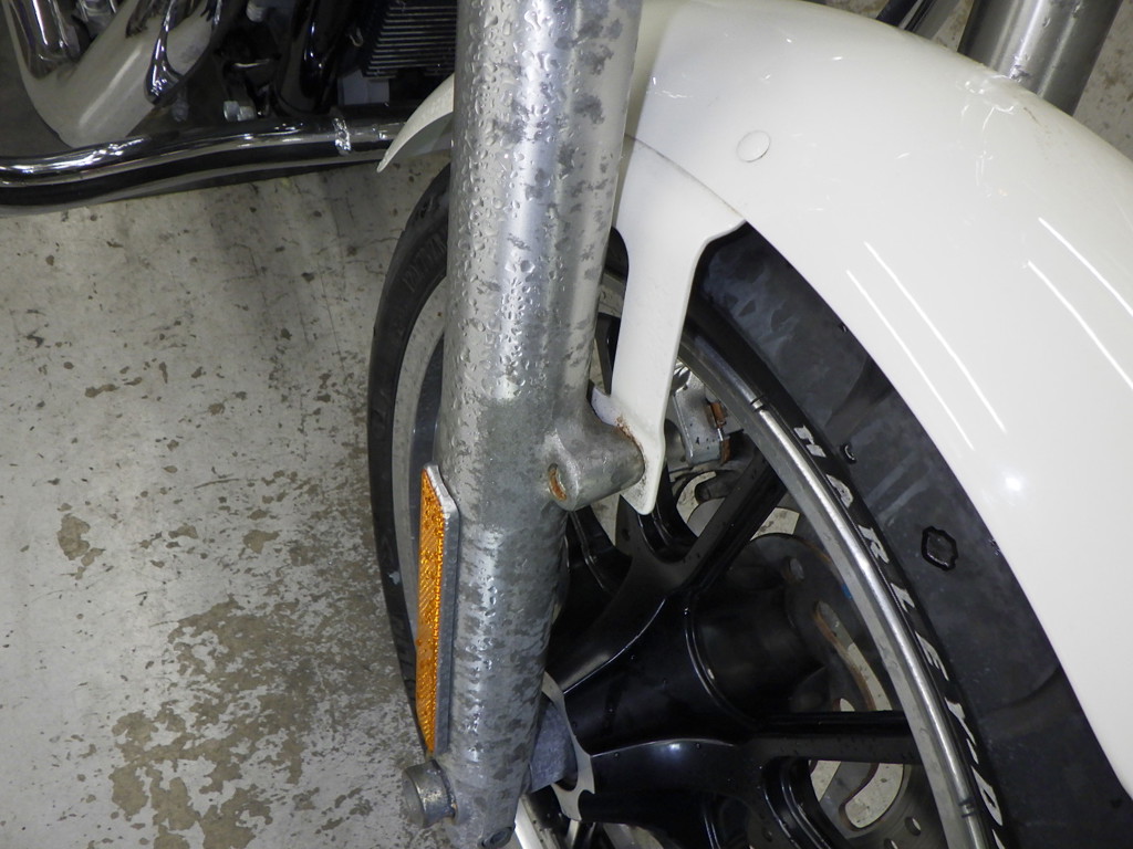 | внешняя часть вилки | следы коррозии <много>, потек масла |