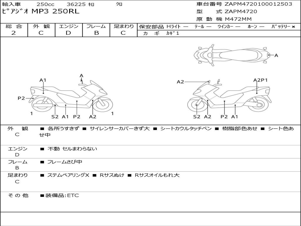 | Номер рамы / VIN | ZAPM4720100012503 |