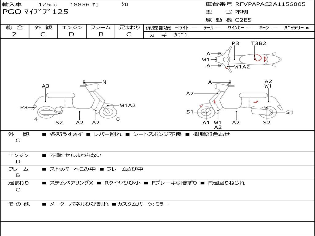 | Номер рамы / VIN | RFVPAPAC2A1156805 |