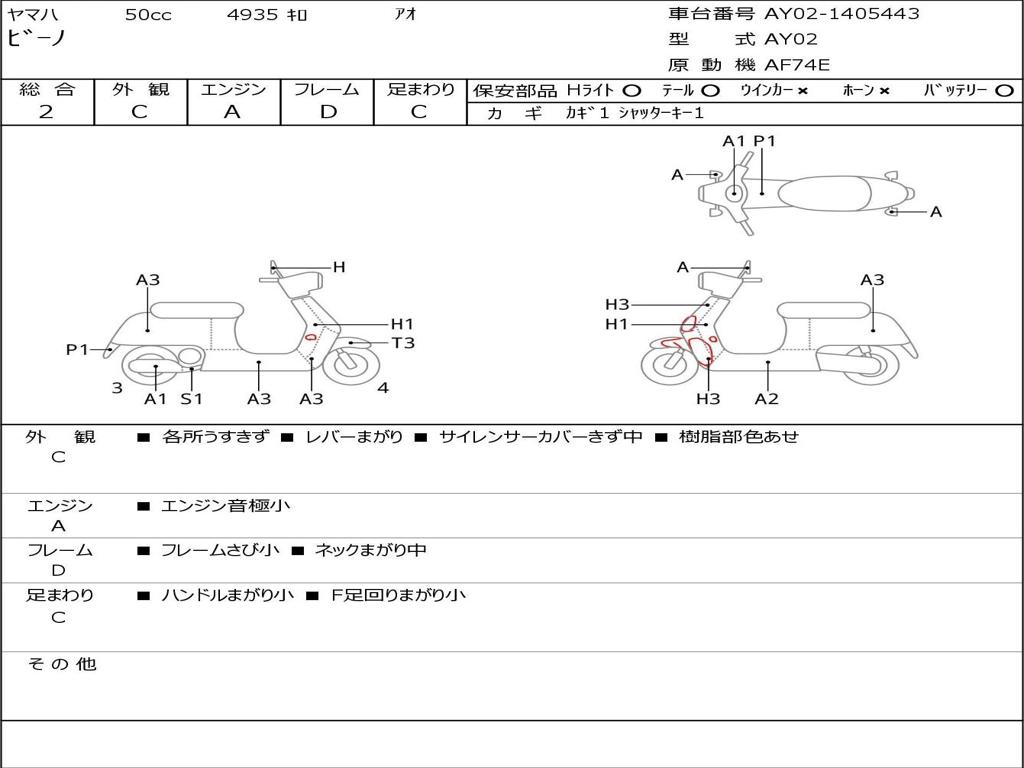 | Номер рамы / VIN | AY02-1405443 |
