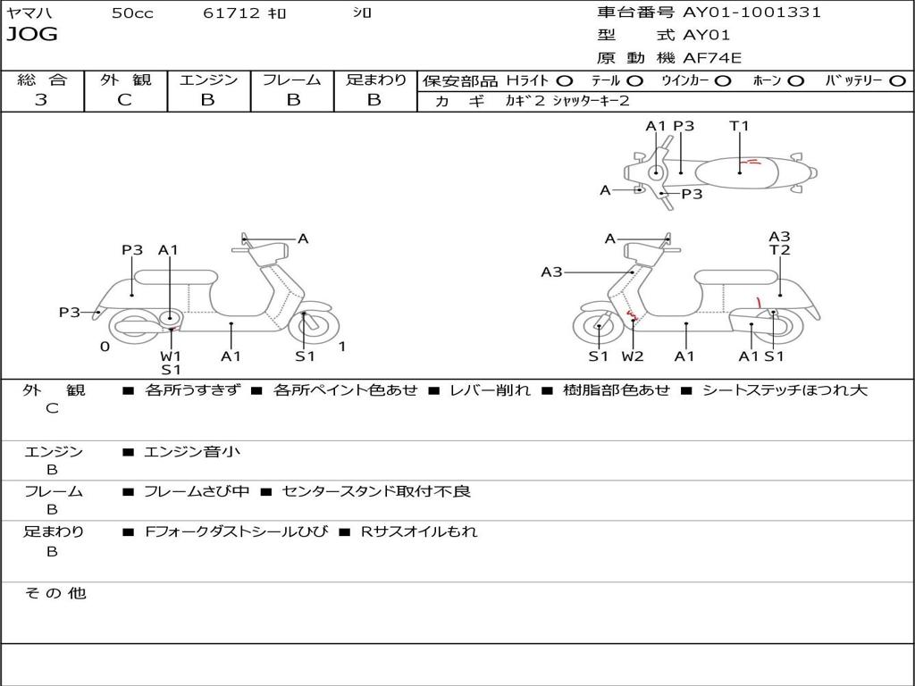 | Номер рамы / VIN | AY01-1001331 |