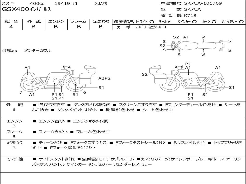 | Номер рамы / VIN | GK7CA-101769 |