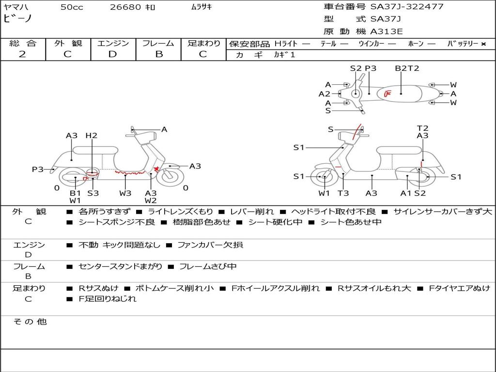 | Номер рамы / VIN | SA37J-322477 |