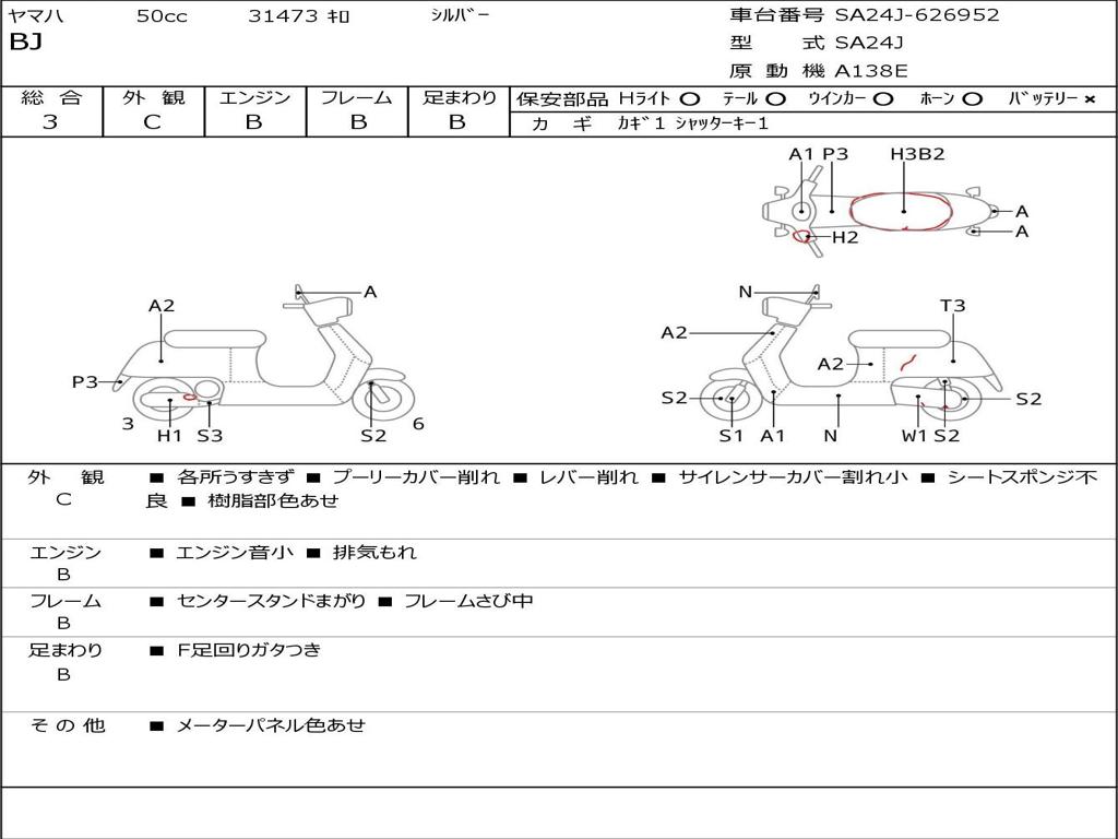 | Номер рамы / VIN | SA24J-626952 |