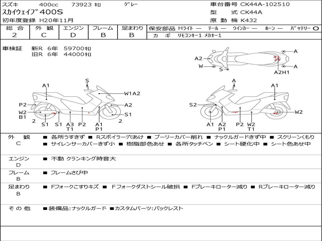 | Номер рамы / VIN | CK44A-102510 |