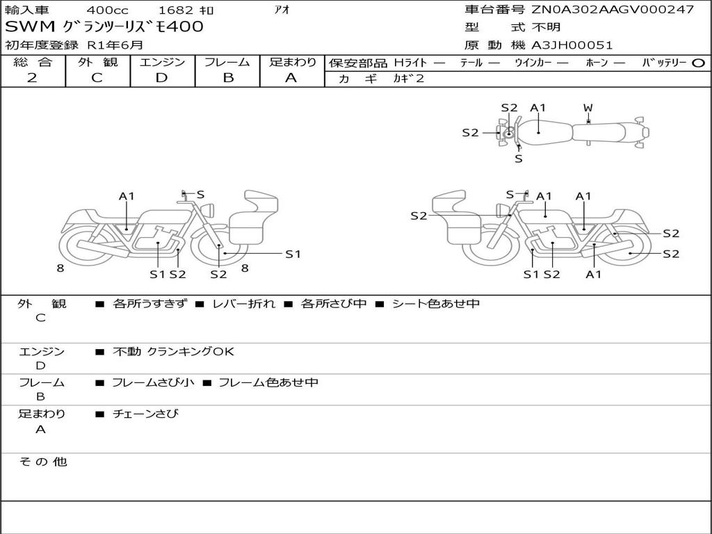 | Номер рамы / VIN | ZN0A302AAGV000247 |