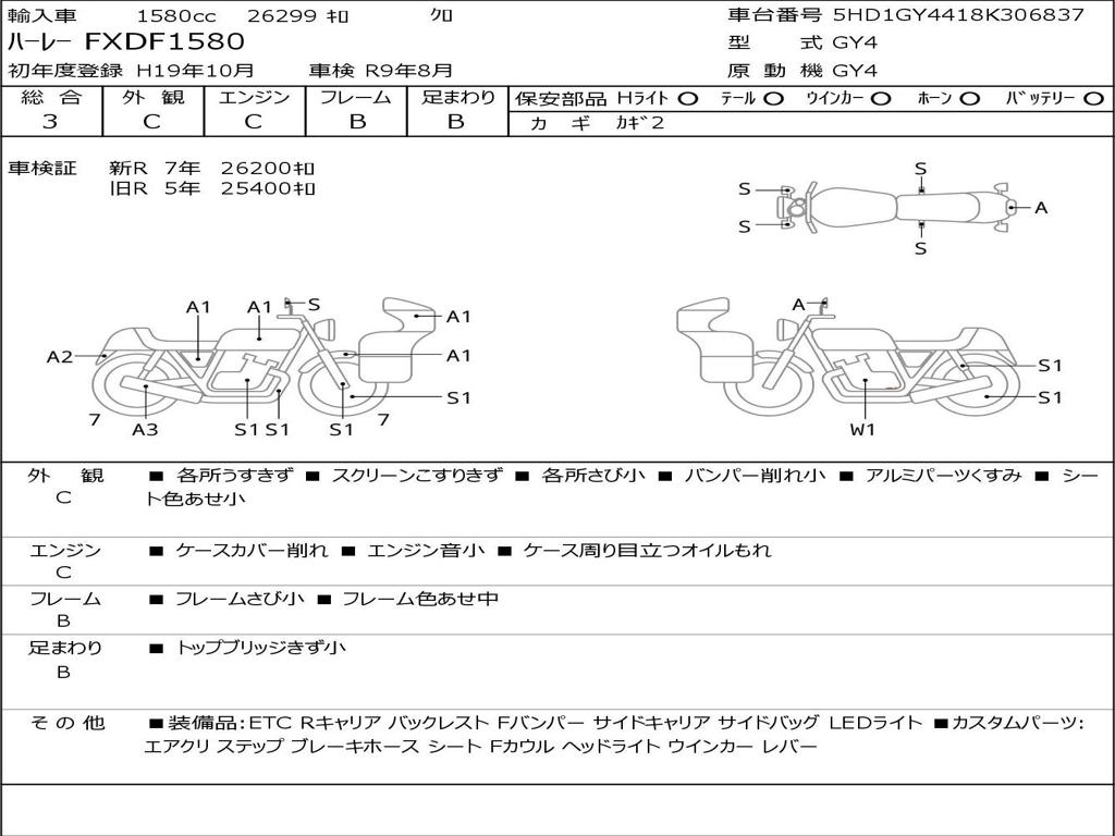 | Номер рамы / VIN | 5HD1GY4418K306837 |