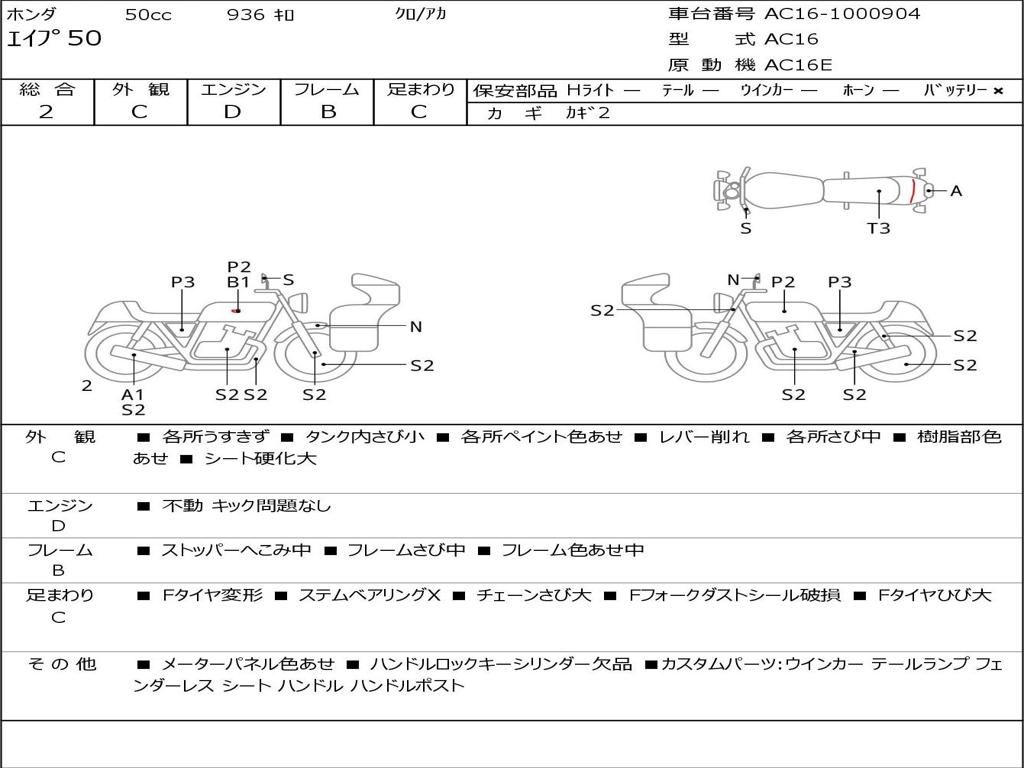 | Номер рамы / VIN | AC16-1000904 |