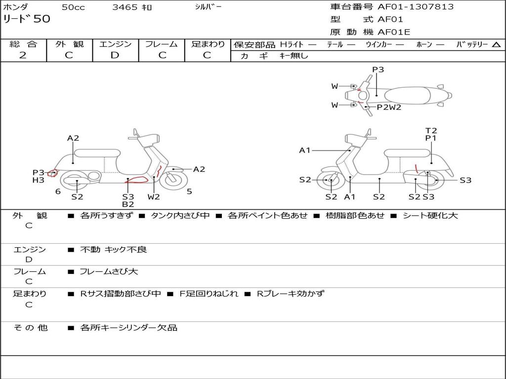 | Номер рамы / VIN | AF01-1307813 |