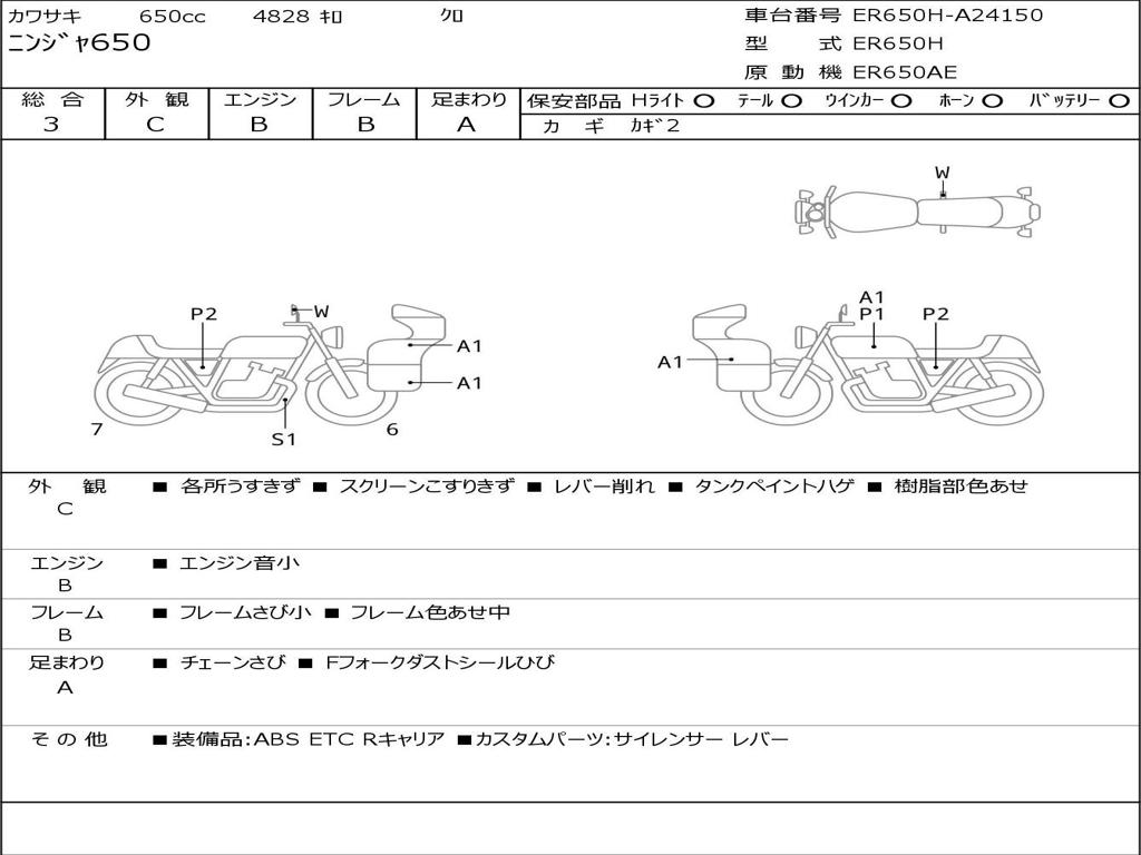 | Номер рамы / VIN | ER650H-A24150 |