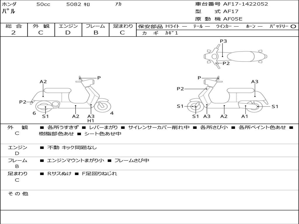 | Номер рамы / VIN | AF17-1422052 |
