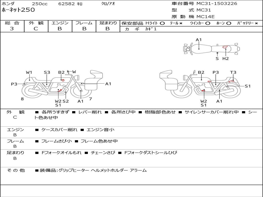 | Номер рамы / VIN | MC31-1503226 |