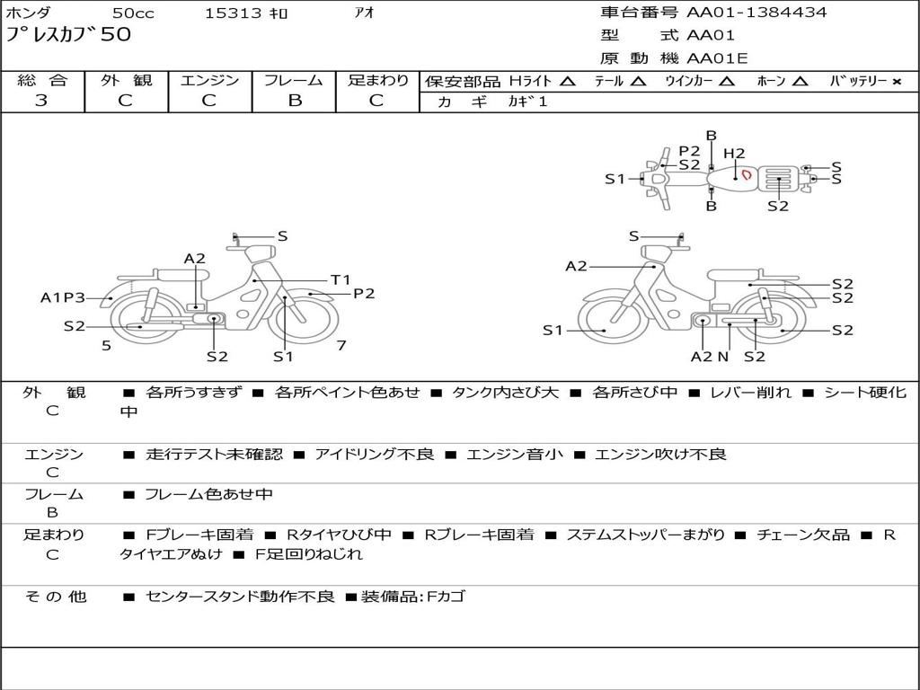 | Номер рамы / VIN | AA01-1384434 |