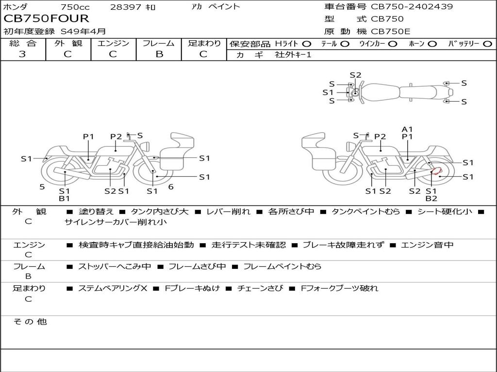 | Номер рамы / VIN | CB750-2402439 |