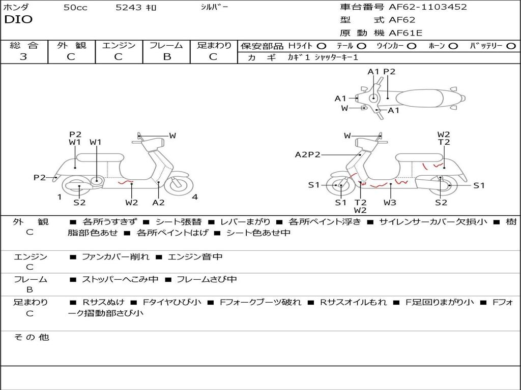 | Номер рамы / VIN | AF62-1103452 |