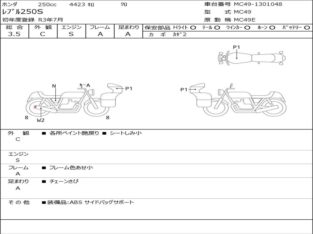 | Номер рамы / VIN | MC49-1301048 |