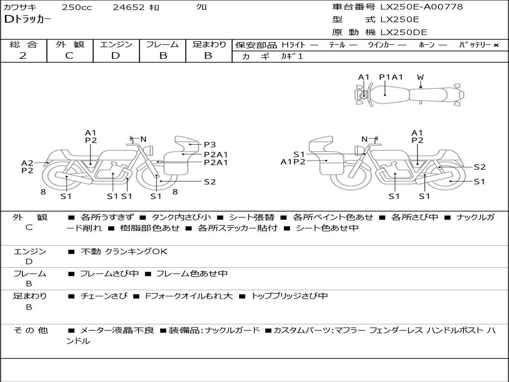 | Номер рамы / VIN | LX250E-A00778 |