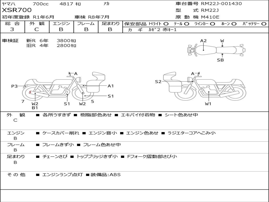 | Номер рамы / VIN | RM22J-001430 |