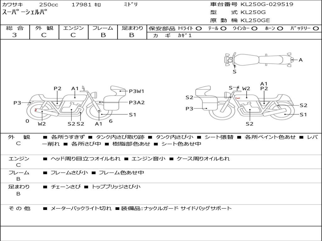 | Номер рамы / VIN | KL250G-029519 |