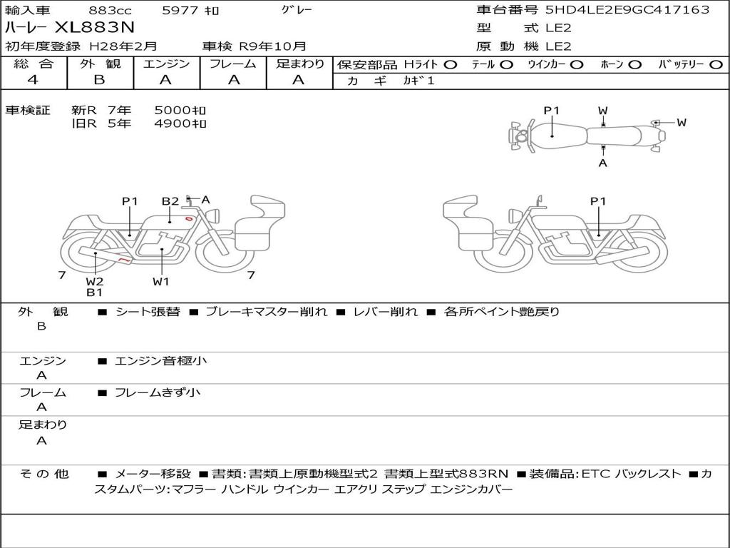 | Номер рамы / VIN | 5HD4LE2E9GC417163 |
