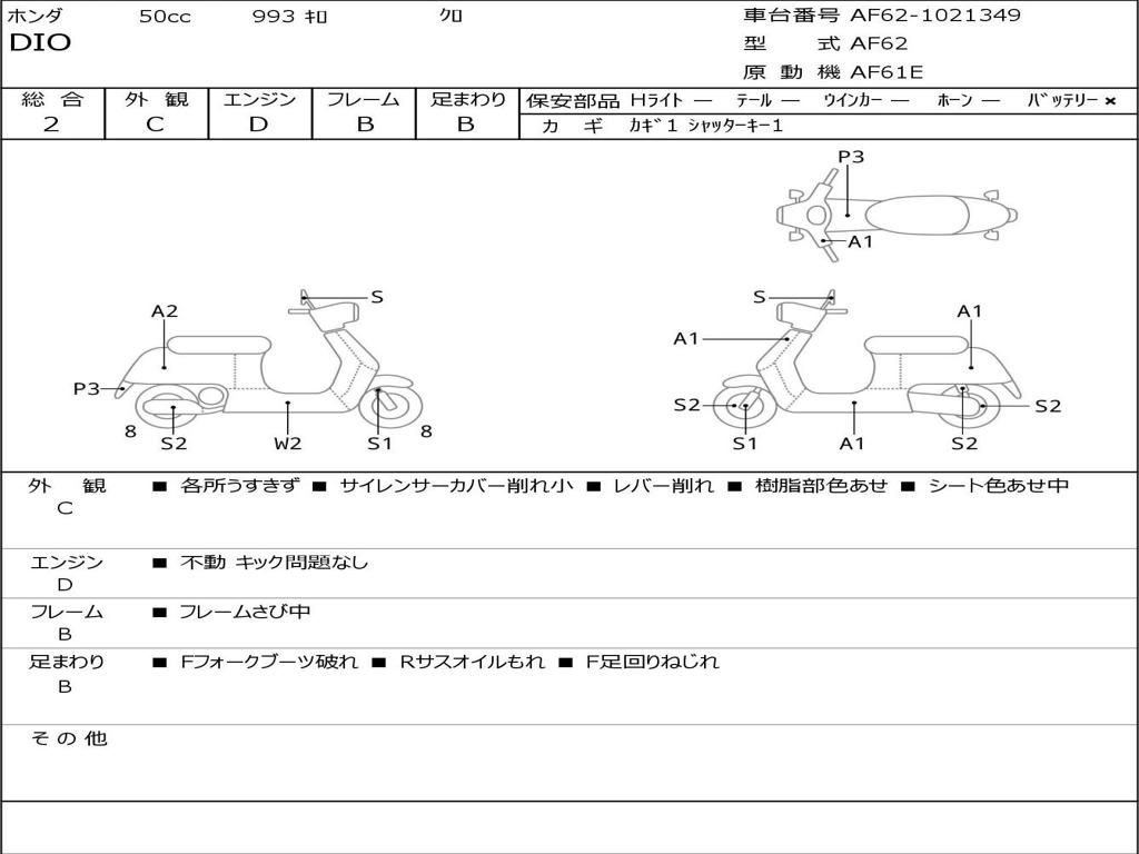 | Номер рамы / VIN | AF62-1021349 |