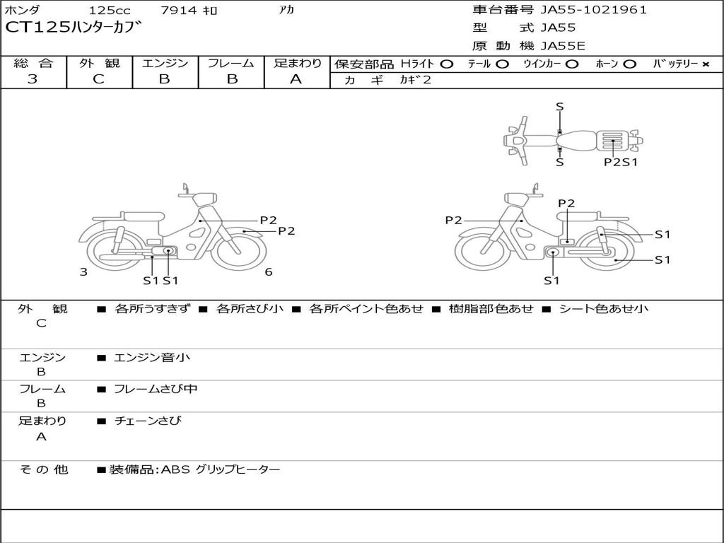 | Номер рамы / VIN | JA55-1021961 |