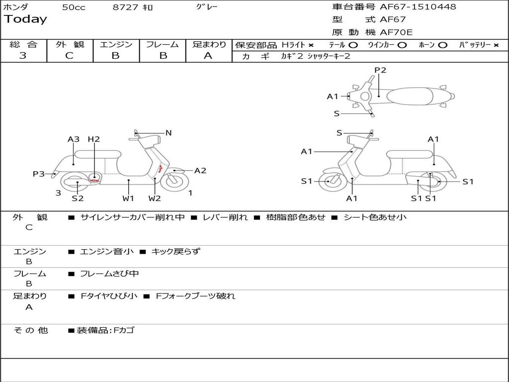 | Номер рамы / VIN | AF67-1510448 |