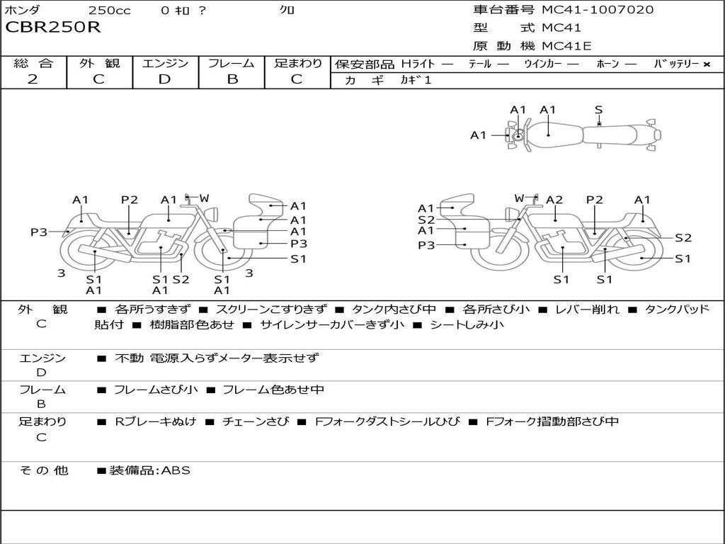 | Номер рамы / VIN | MC41-1007020 |