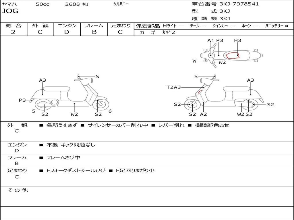 | Номер рамы / VIN | 3KJ-7978541 |