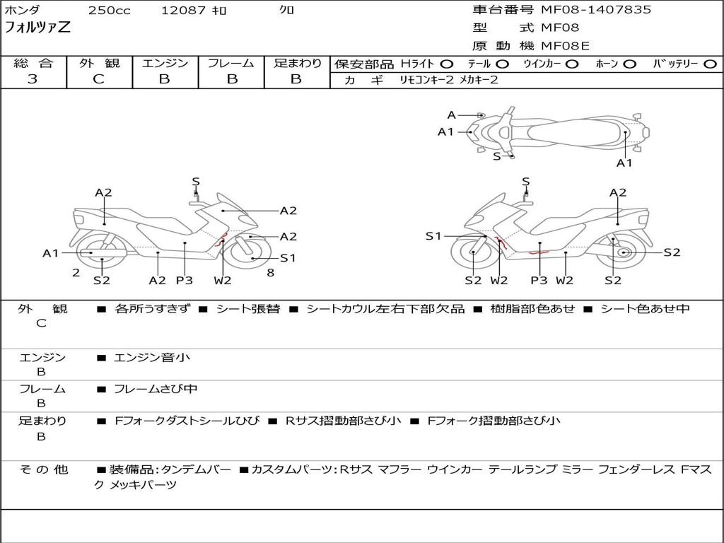 | Номер рамы / VIN | MF08-1407835 |