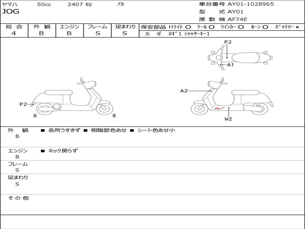 | Номер рамы / VIN | AY01-1028965 |