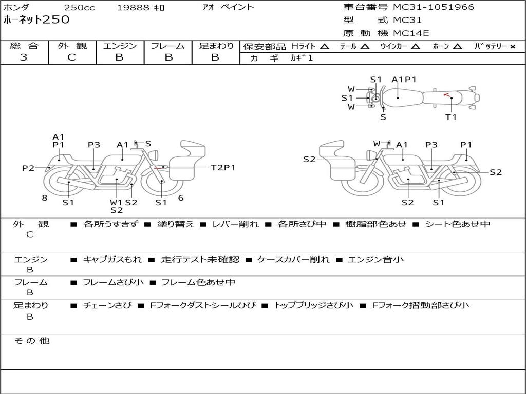 | Номер рамы / VIN | MC31-1051966 |