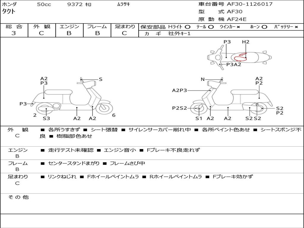 | Номер рамы / VIN | AF30-1126017 |