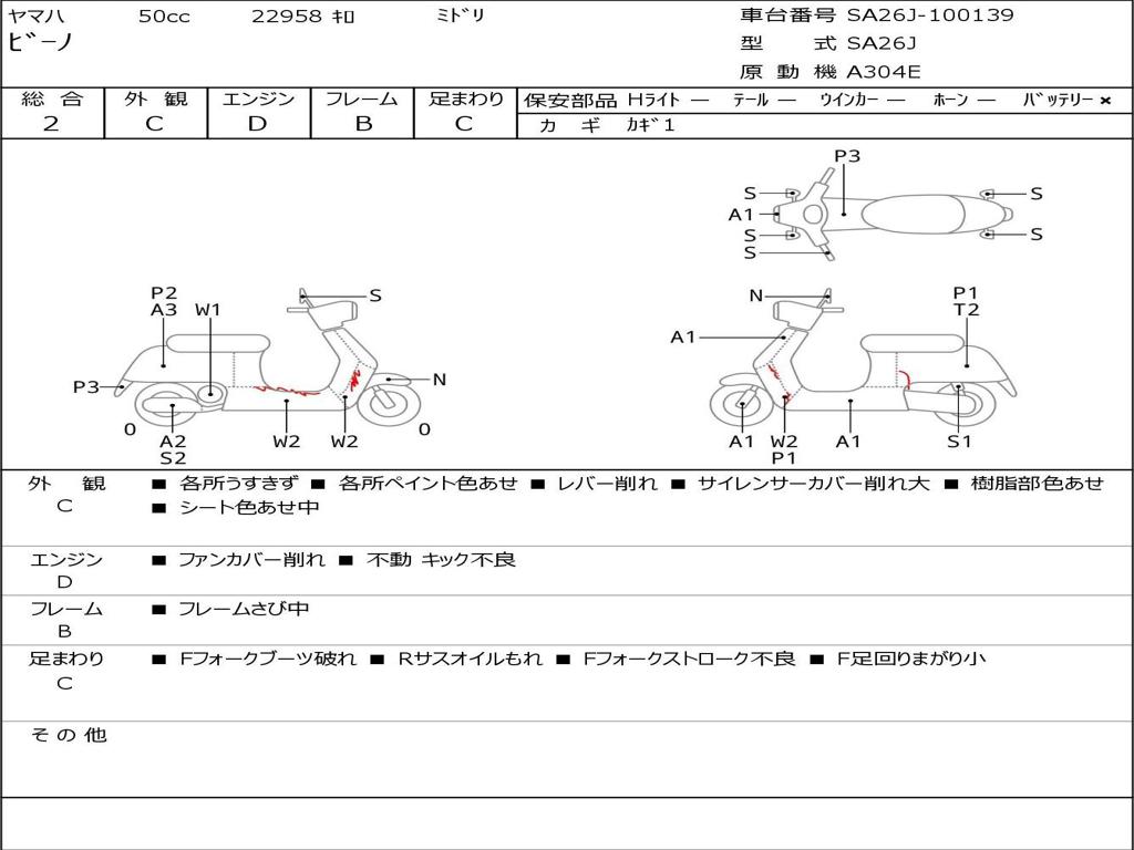 | Номер рамы / VIN | SA26J-100139 |
